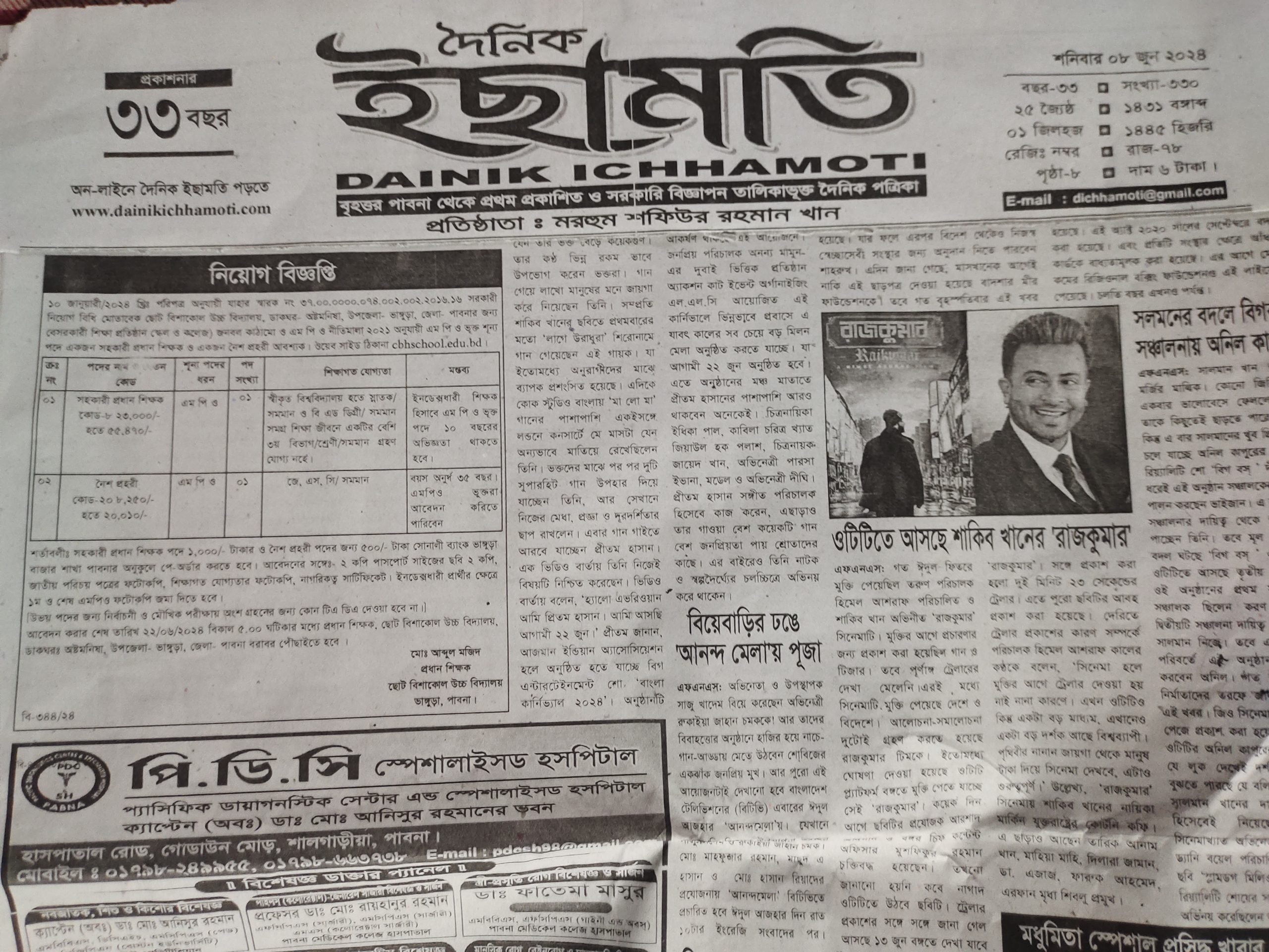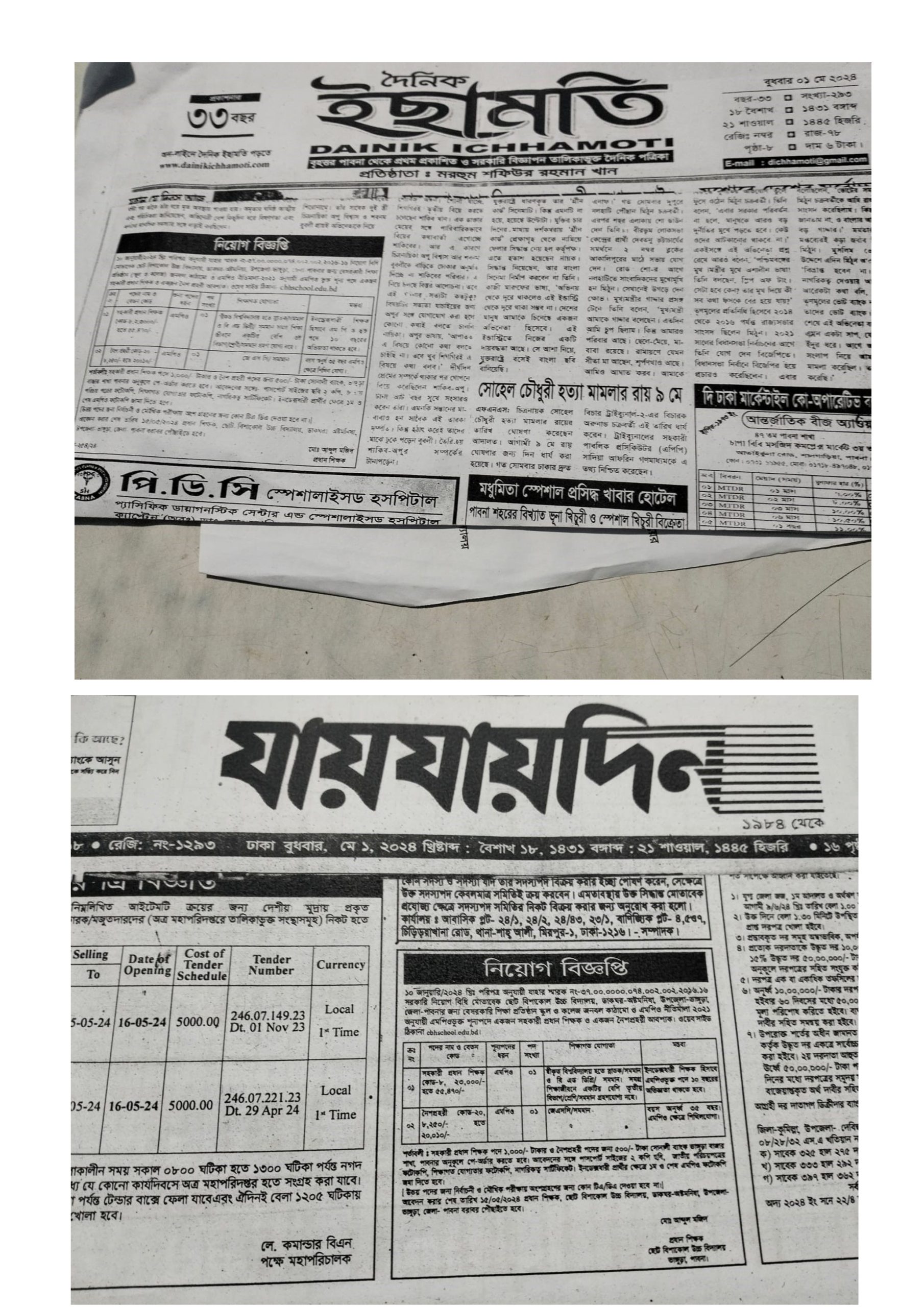 সহকারী প্রধান শিক্ষক ও নৈশ প্রহরী পদে নিয়োগ বিজ্ঞপ্তি, দৈনিক ইছামতি পত্রিকা, ০৮ জুন ২০২৪ ইং। । |